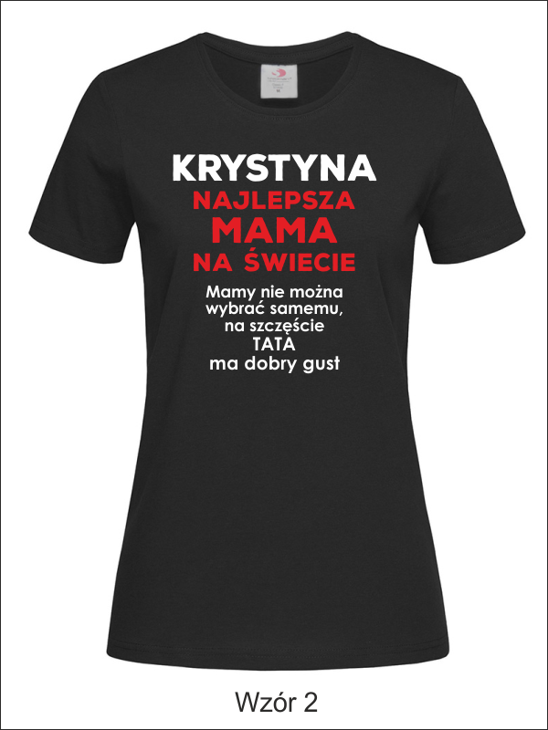 Na przodzie koszulki znajduje się wykonany nadruk dedykacji dla Mamy: