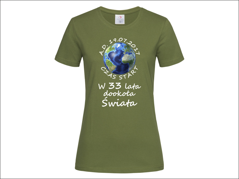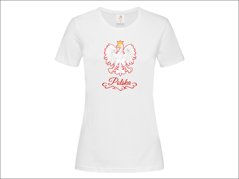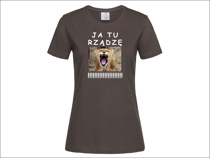 Nadruk wykonany jest na wysokiej jakości, bawełnianej damskiej koszulce z krótkim rękawem.