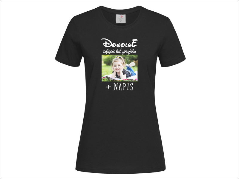 Koszulka damska z nadrukowaną jednostronnie, dowolną grafiką, zdjęciem i napisem.