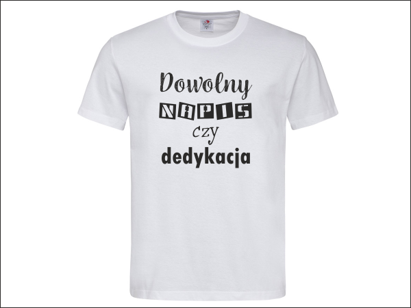 Na koszulce można wykonać dowolny napis, treść czy dedykację.