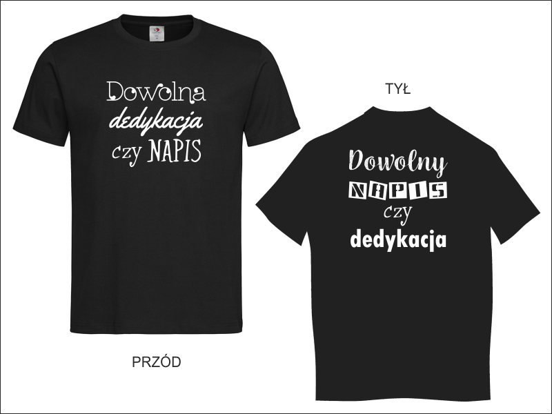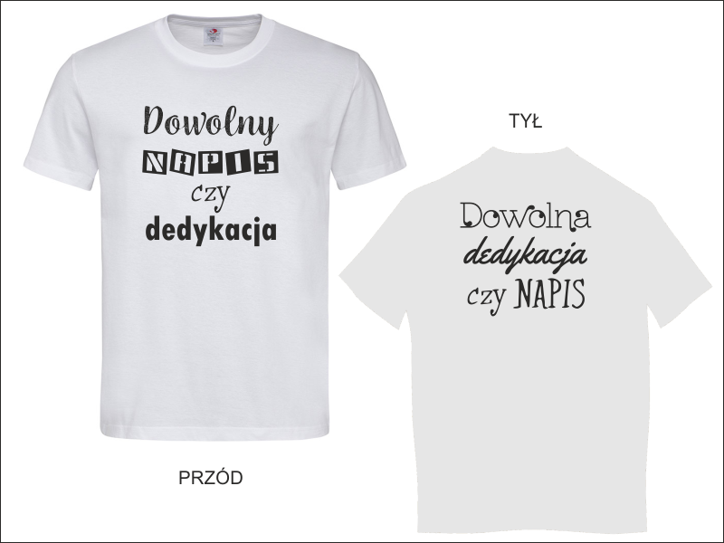Koszulka z nadrukowanym obustronnie, dowolnym napisem czy prostą grafiką.