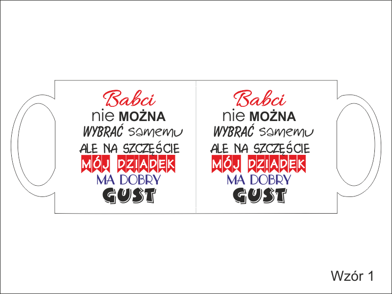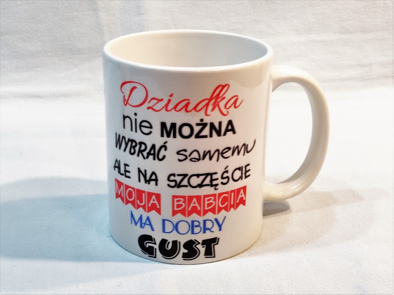 W projekcie kubeczka wykorzystano motyw Babci i Dziadka, którzy mają dobry gust.