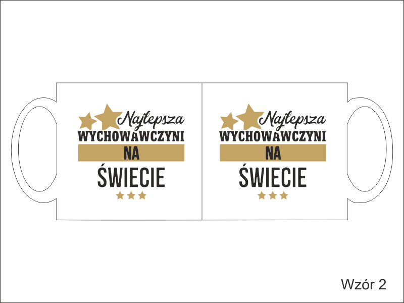 Nadruk dedykacji na kubku jest dowolny i można wykorzystać jeden z wzorów lub wykonać wg indywidualnych ustaleń.