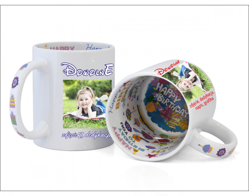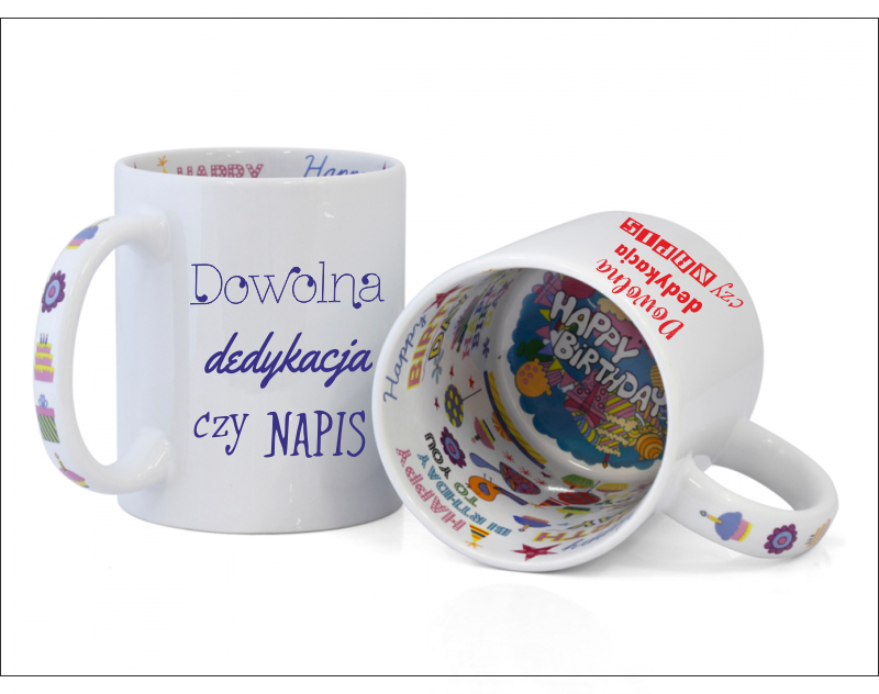 Kubek biały z wnętrzem HAPPY BIRTHDAY o pojemności 330ml i wysokości 9cm, średnica 8cm, wykonany jest z najwyższej jakości ceramiki.