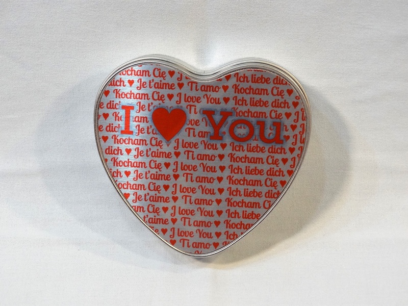 Pudełko metalowe w kształcie serca z blachą do nadruku