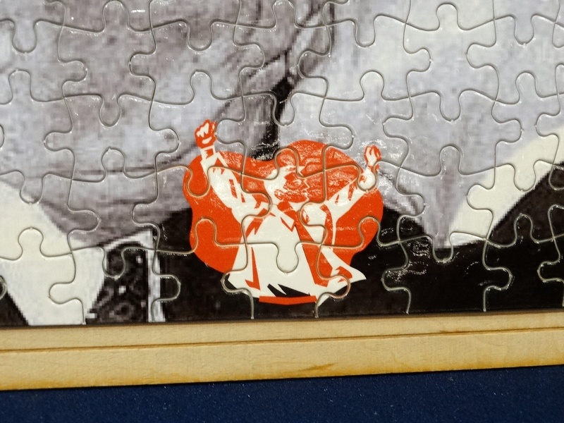 Wykonane z kartonu puzzle. Poszczególne elementy są precyzyjnie wycięte i dobrze dopasowane.