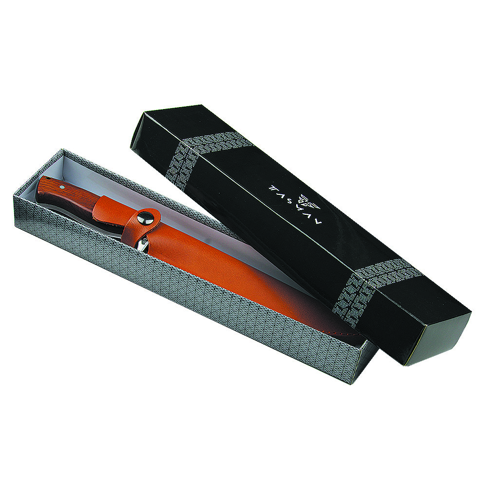 W komplecie dopasowane do noża etui z naturalnej skóry.