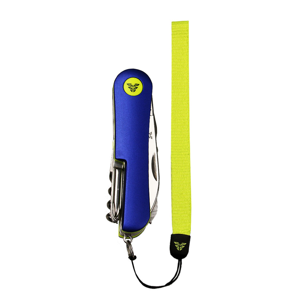 Złożony scyzoryk ma wielkość 9 cm. Scyzoryk ma 11 funkcji i dodatkową smycz.
