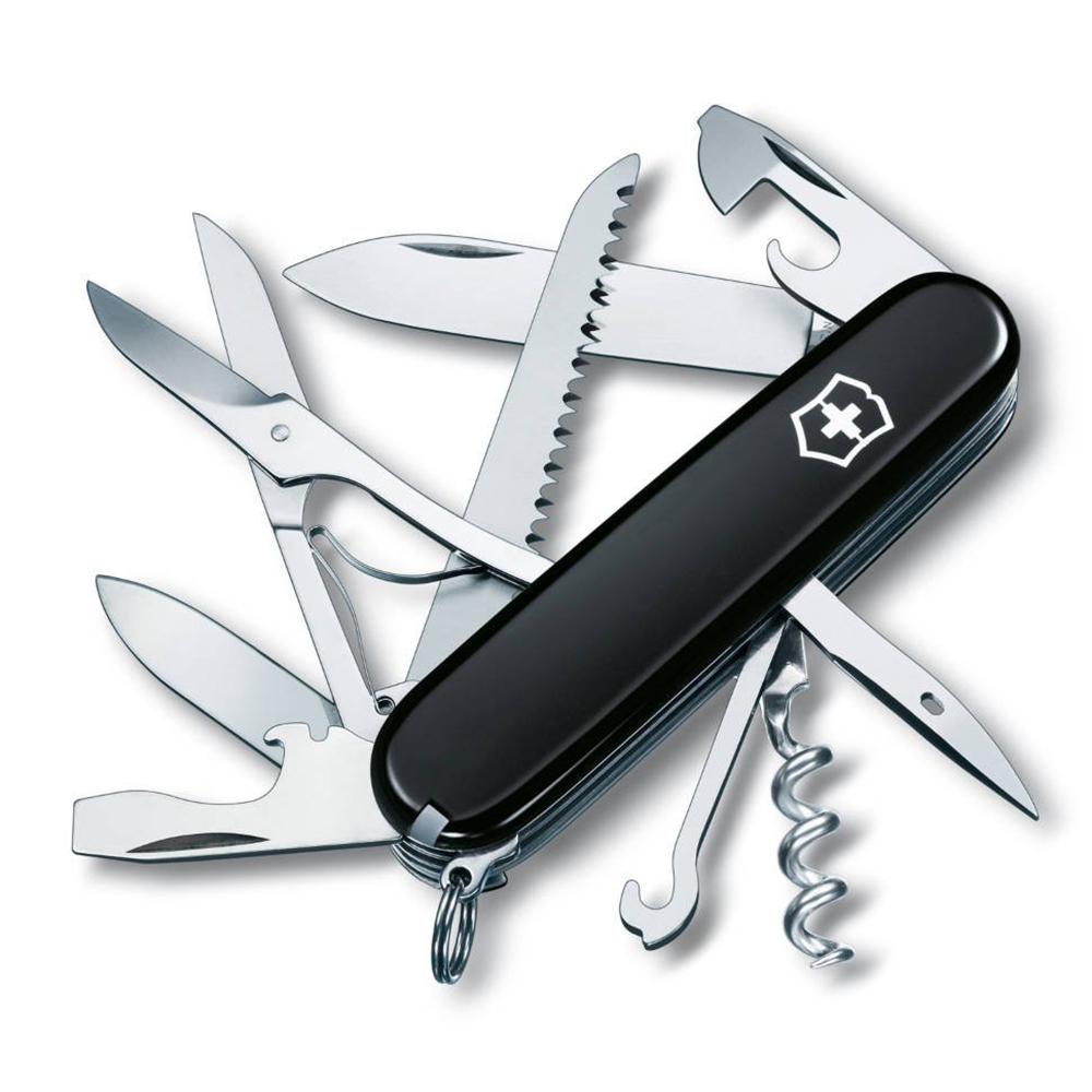 Scyzoryk w kolorze czarnym z bardzo dużą ilością narzędzi w standardowych wymiarach, długość 91 mm.