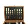 Całość umieszczona jest w drewnianym pudełku - szachownicy.