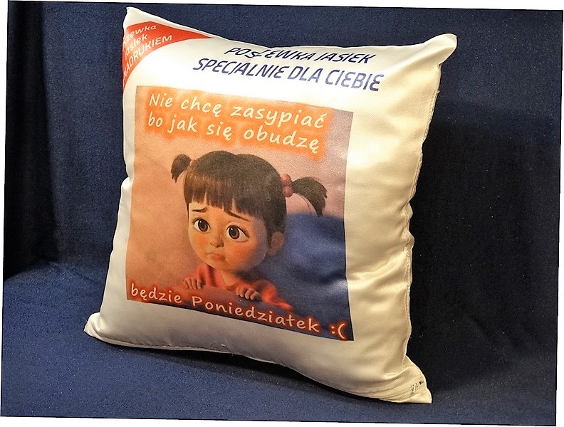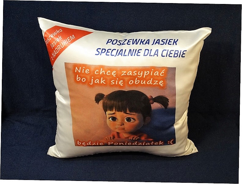 Rozmiar poszewki to 370 x 370 mm. Pole zadruku odpowiada kartce A4, czyli 21 x 30 cm.