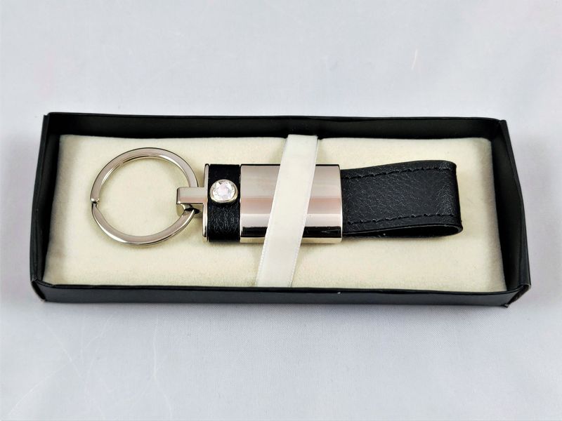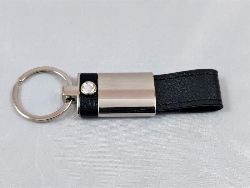 Brelok do kluczy skórzano-metalowy z kryształkiem Swarovskiego.
