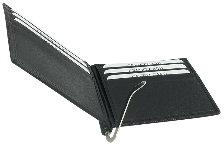 Skórzany czarny męski mini portfel Nappa z podstawowymi funkcjami z grawerem.