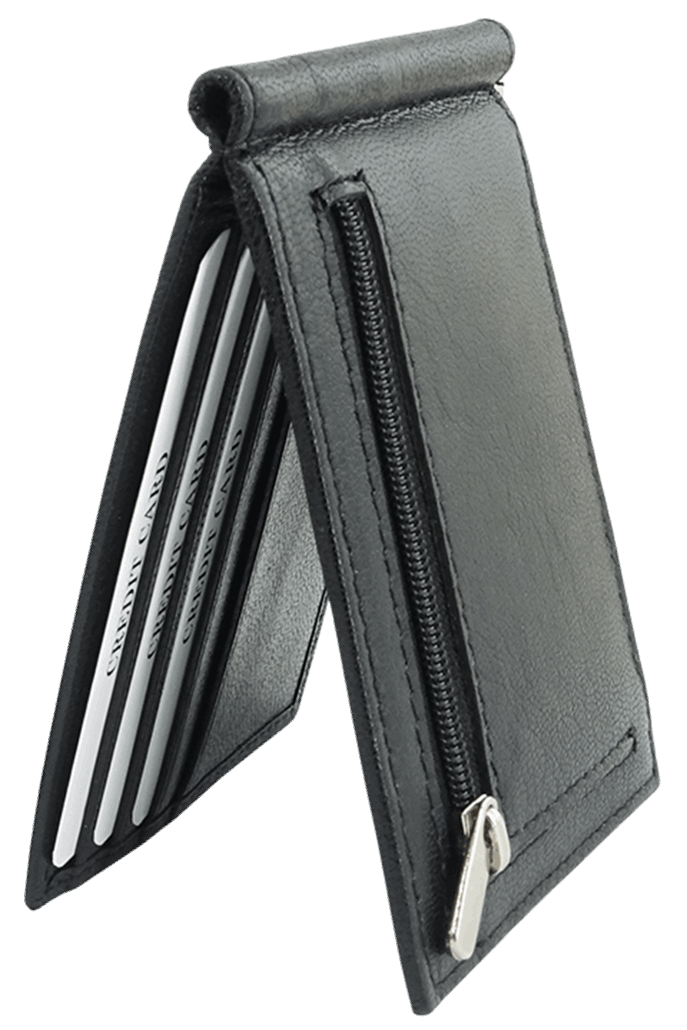Wyjątkowo zgrabny, czarny męski mini portfel z podstawowymi funkcjami i kieszeniami wystarczającymi w codziennym użytkowaniu.
