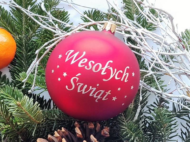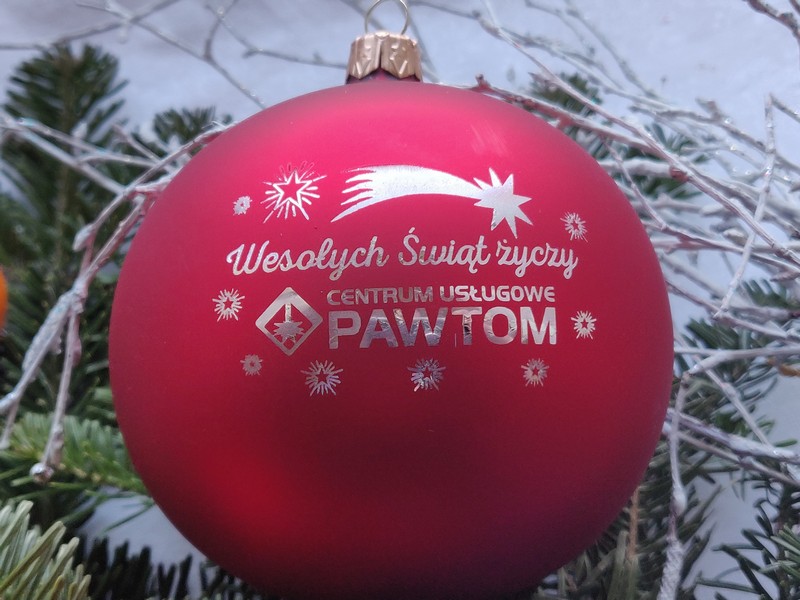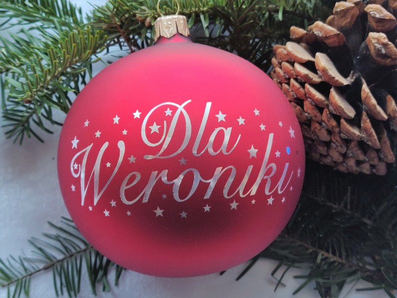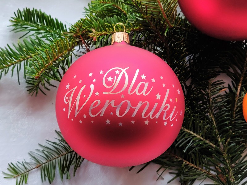 Świąteczna szklana bombka choinkowa z grawerem indywidualnej dedykacji.
