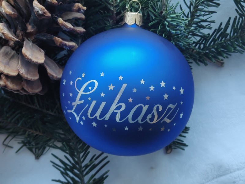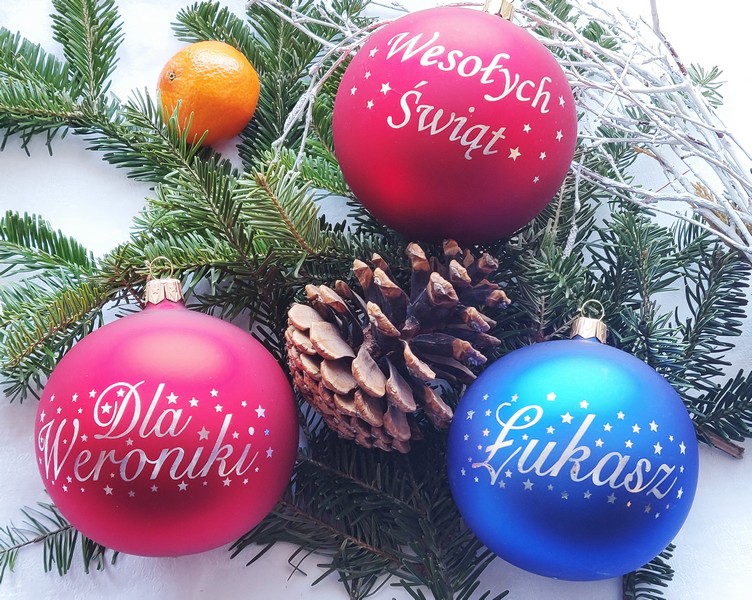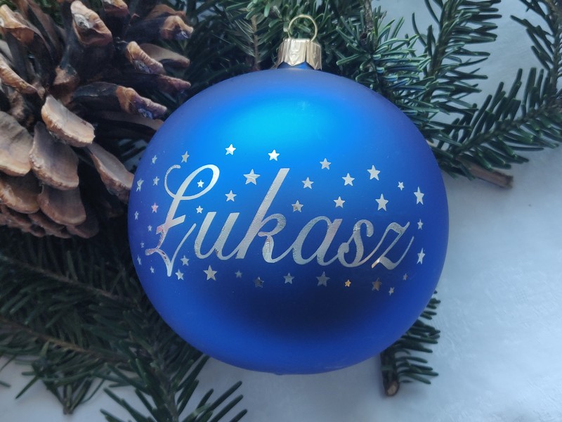 Świąteczna szklana bombka choinkowa z grawerem indywidualnej dedykacji.