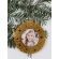 Ozdoba wycięta jest w okrągłym kształcie i przypomina bomkę choinkową.