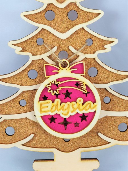 Może to być ozdobna bombka brokatowa z imieniem lub zdjęciem albo ekologiczna bombka z drewna i sklejki lub filcu.