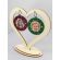 Stojaczek na podstawce z ozdobnymi brokatowymi zawieszkami wygląda jak pamiątkowa statuetka.