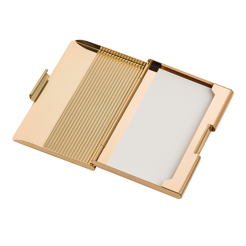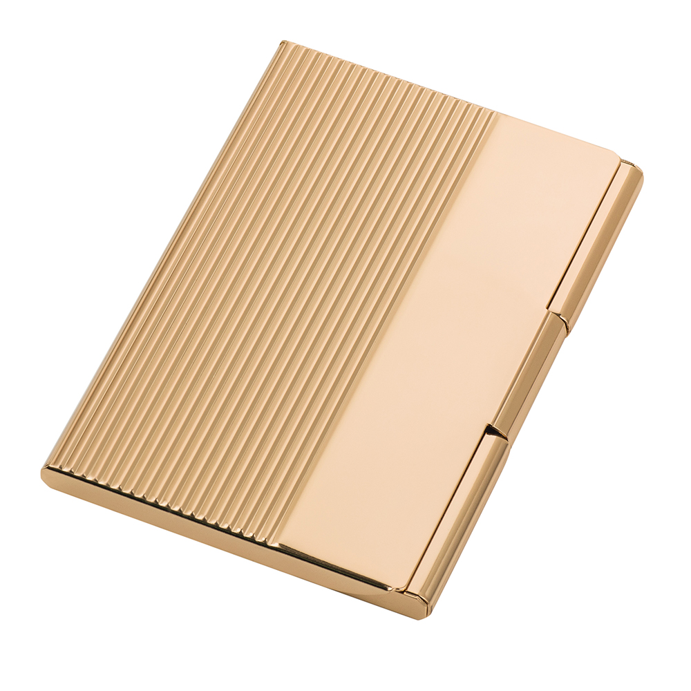 Elegancki metalowy wizytownik marki Dan Barmore w wytłaczane paski z miejscem pod grawer.