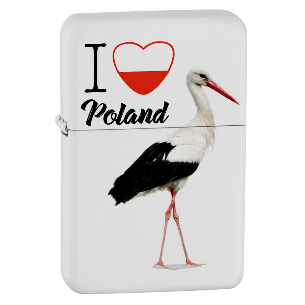 Zapalniczka benzynowa stalowa marki TASMAN. I Love Poland, Bocian.