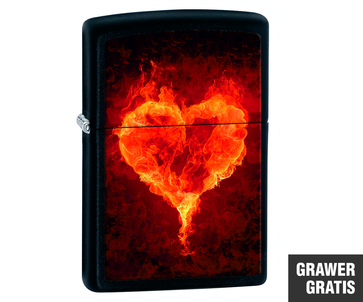 Zapalniczka Zippo Burning Heart black matte, z możliwością graweru.