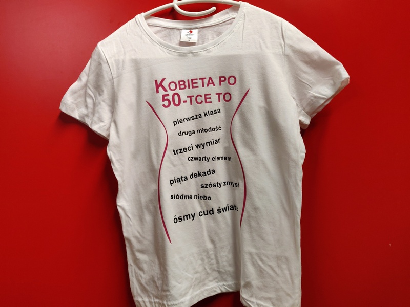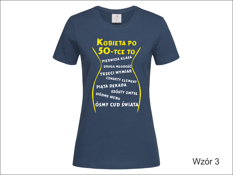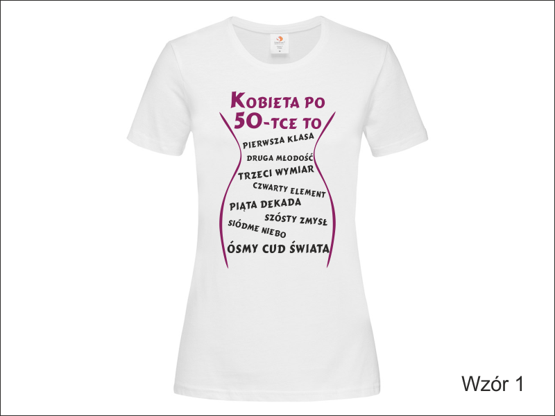 Urodzinowa koszulka damska z nadrukowaną z przodu grafiką i napisem "Kobieta po ...".
