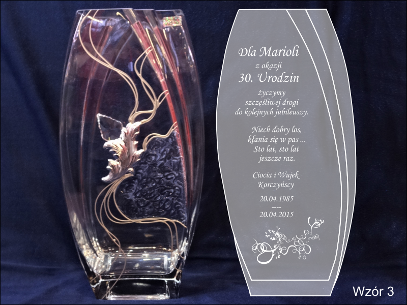 Pamiątkowy grawer na urodziny można także wykonać na innych modelach wazonów.