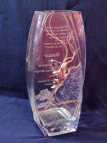Z uwagi formę, kształt i zdobienia wazonu grawer możliwy jest na nieozdobionej części wazonu.