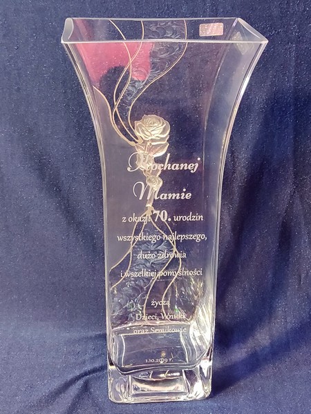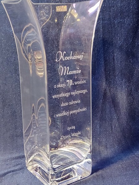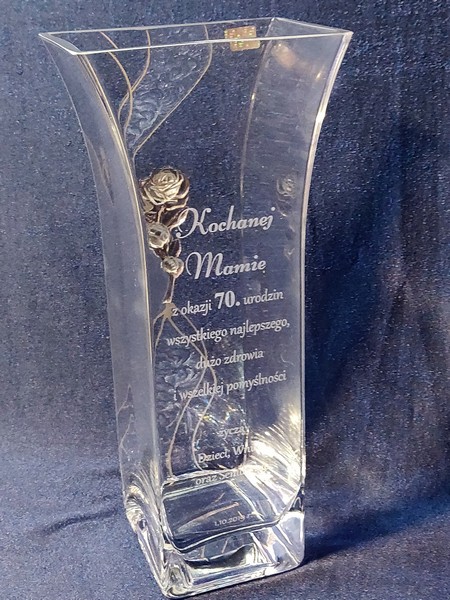 Pamiątkowy grawer z okazji urodzin można także wykonać na innych modelach wazonów.