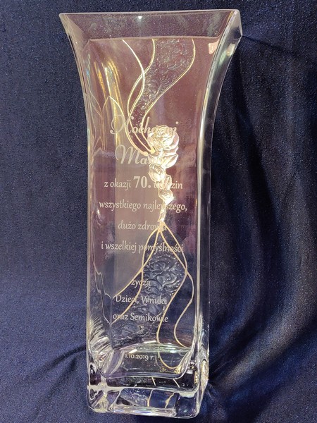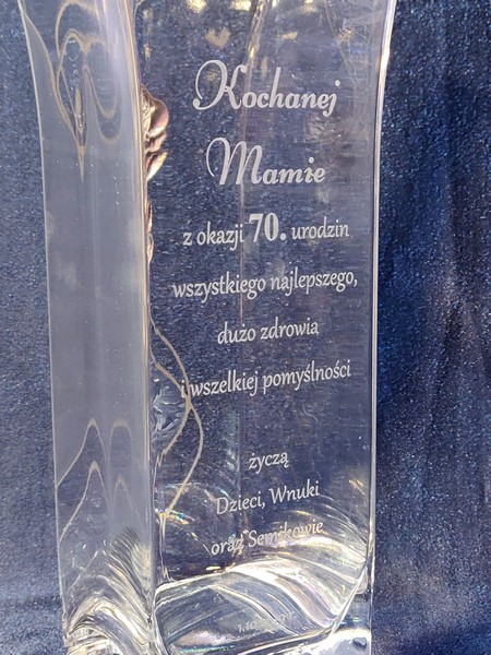 Na wazonie wykonany jest grawer indywidualnej dedykacji z okazji urodzin.