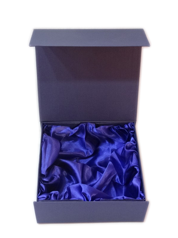Do statuetki można dodatkowo zamówić składane etui kartonowe, wyściełane materiałem, w kolorze niebieskim.