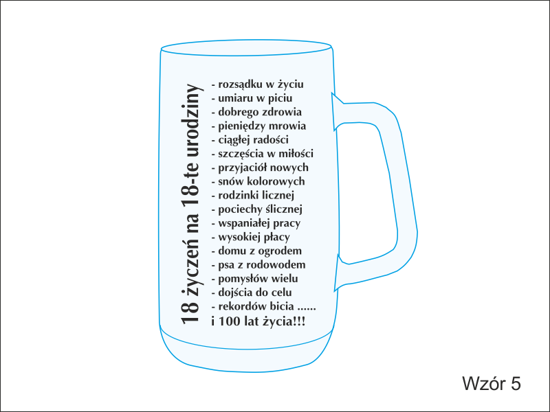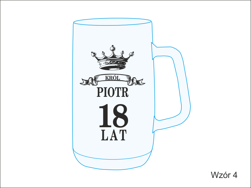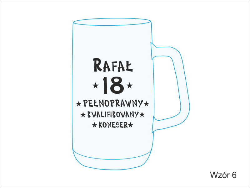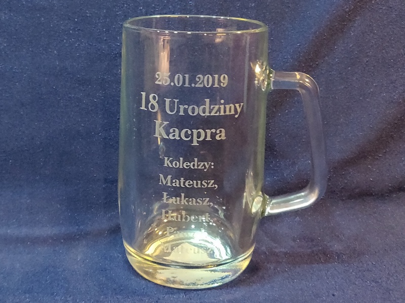 Wygrawerowany kufel może w szczególności sprawdzić się jako upominek z okazji 18-stych Urodzin.