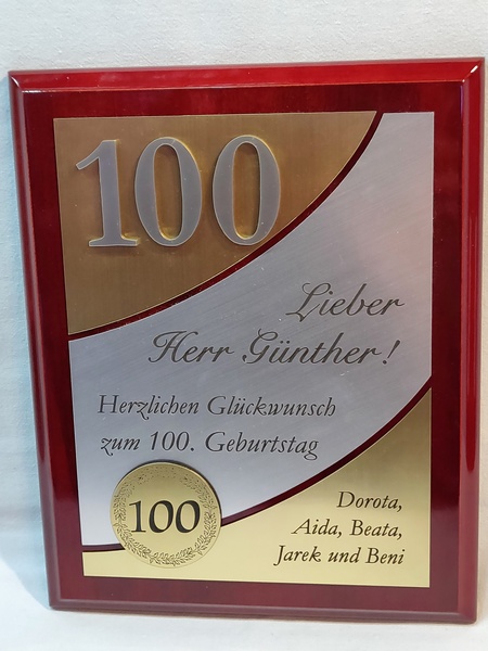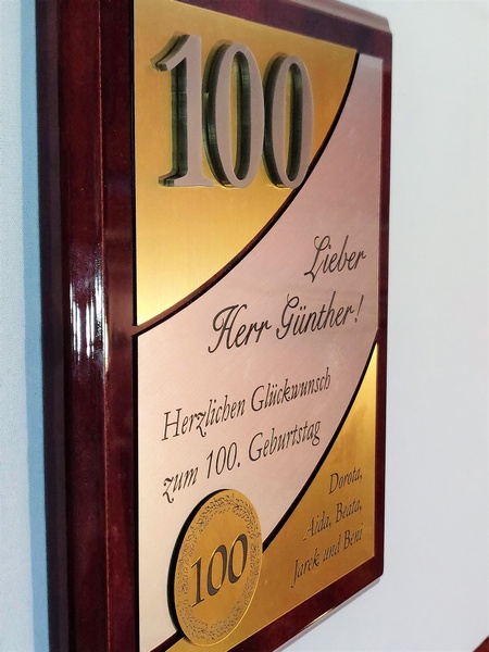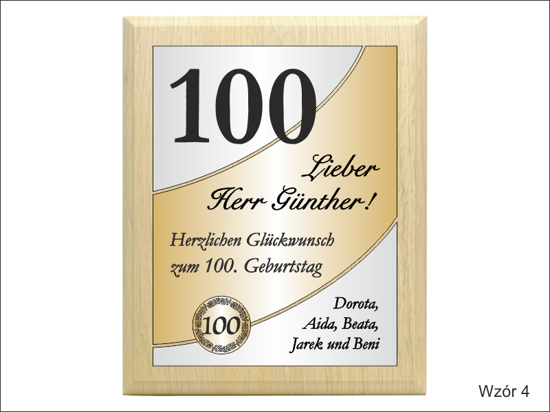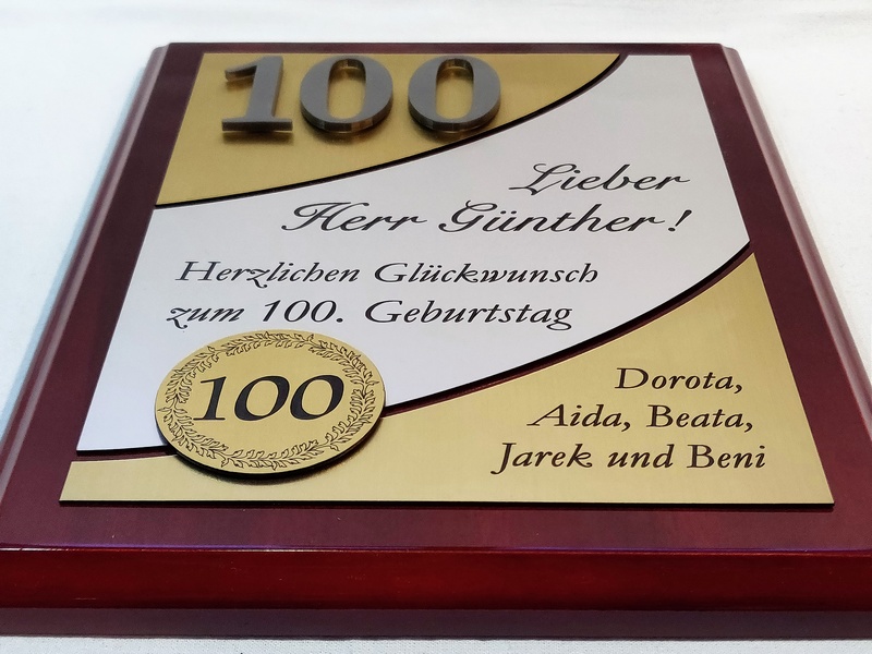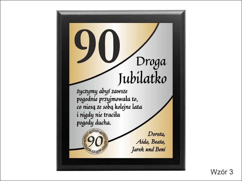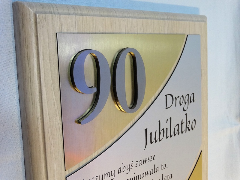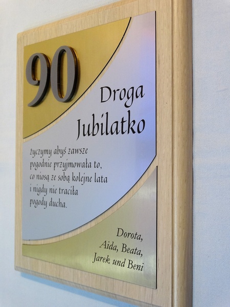 - z dopasowanych do siebie złotego i srebrnego laminatów z grawerowaną dedykacją oraz