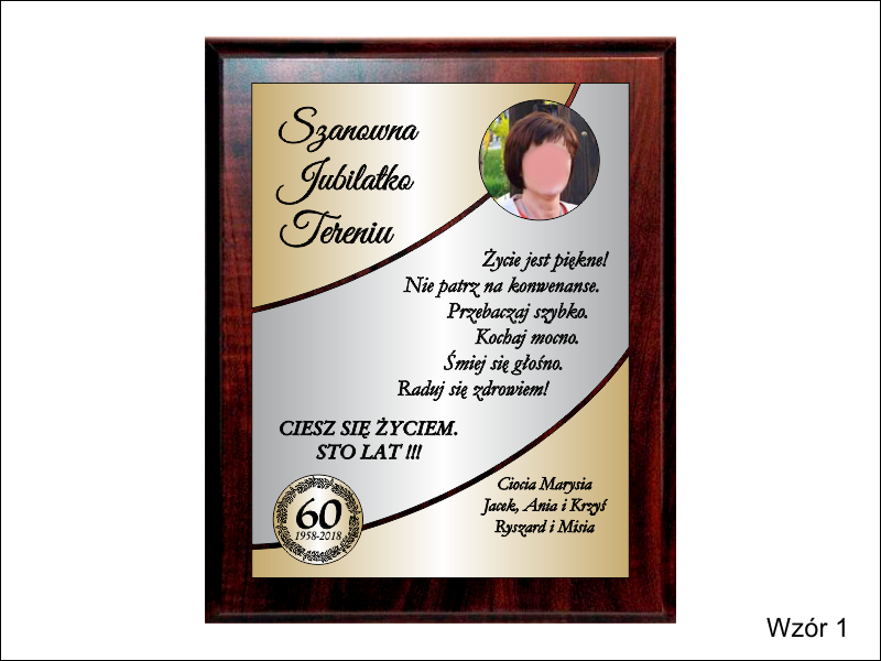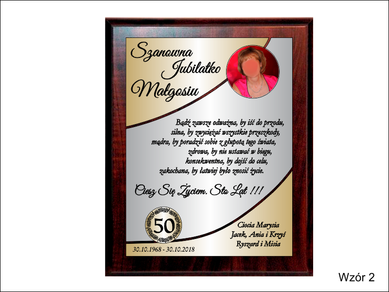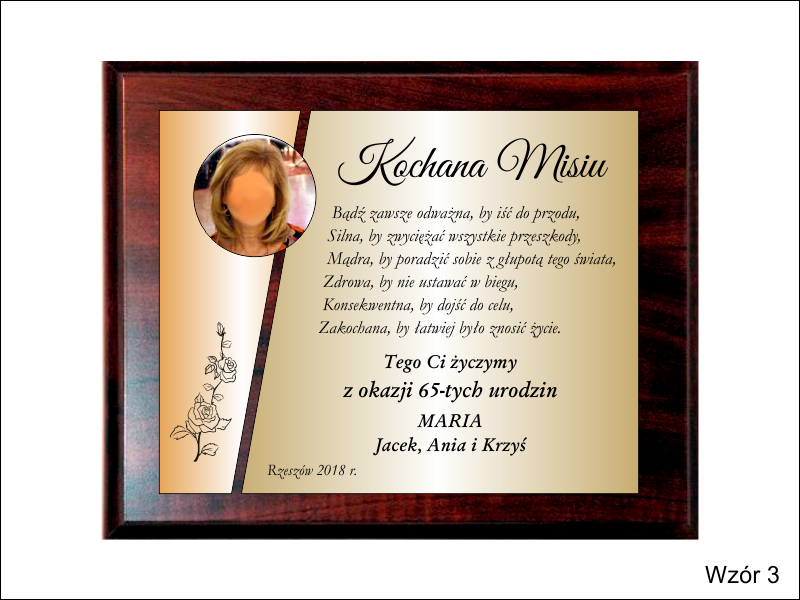 Istnieje możliwość wykonania dedykacji wg indywidualnych ustaleń i projektu uzgodnionego z klientem lub wg jednego z wzorów.