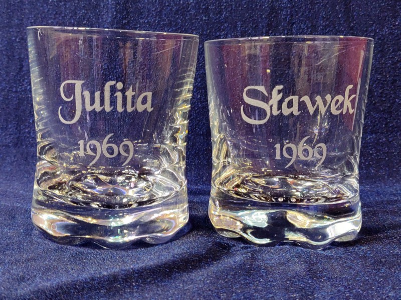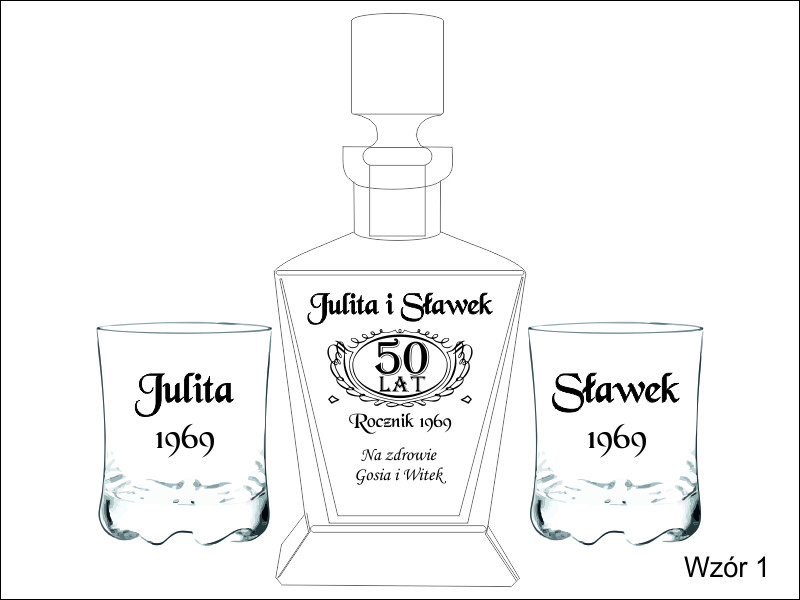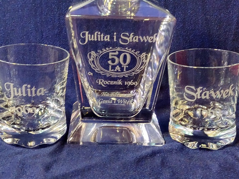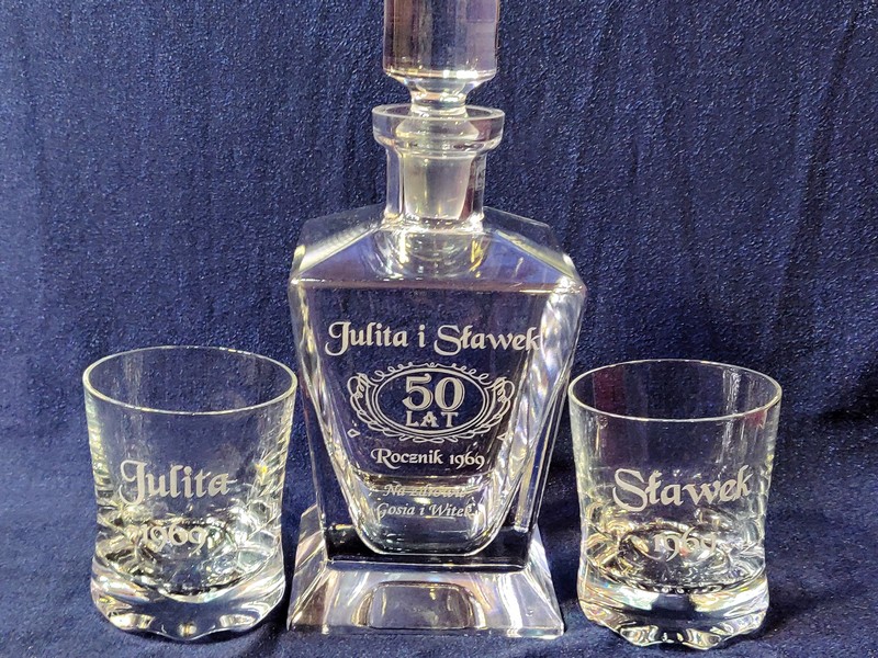 Karafkę i szklaneczki można wręczyć z okazji różnych uroczystości, nie tylko na urodziny, ale także pamiątkę ślubu, rocznicy ślubu, jubileuszu ...