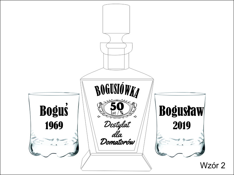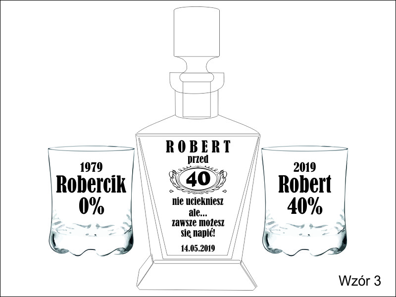 Na karafce i szklaneczkach wykonany jest grawer ozdobników i dedykacji z okazji Urodzin.
