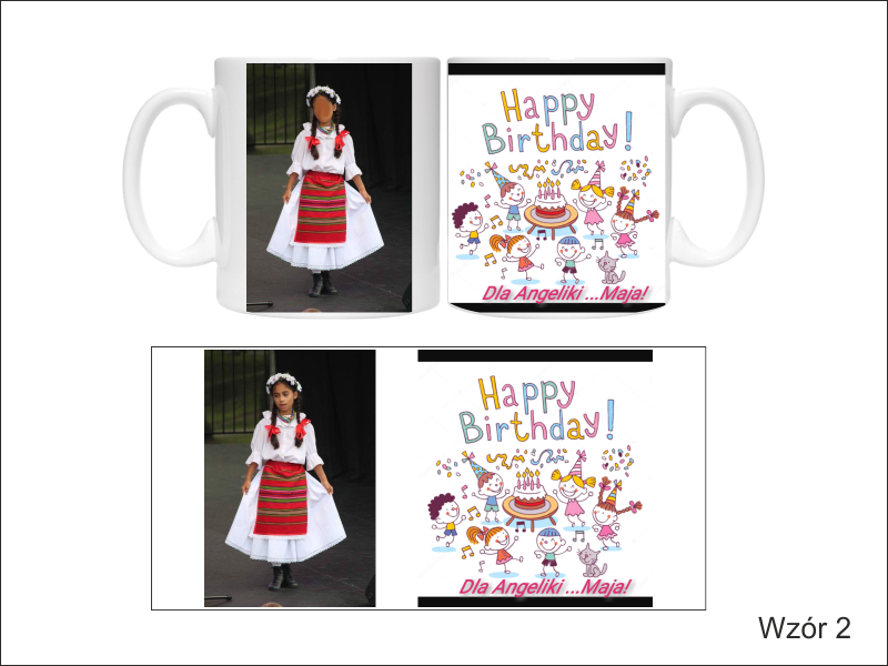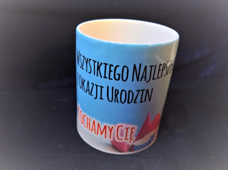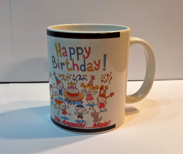 Prezentowany kubek dedykowany jest jako upominek na Urodziny, ale można wykonać go także na inną okazję.
