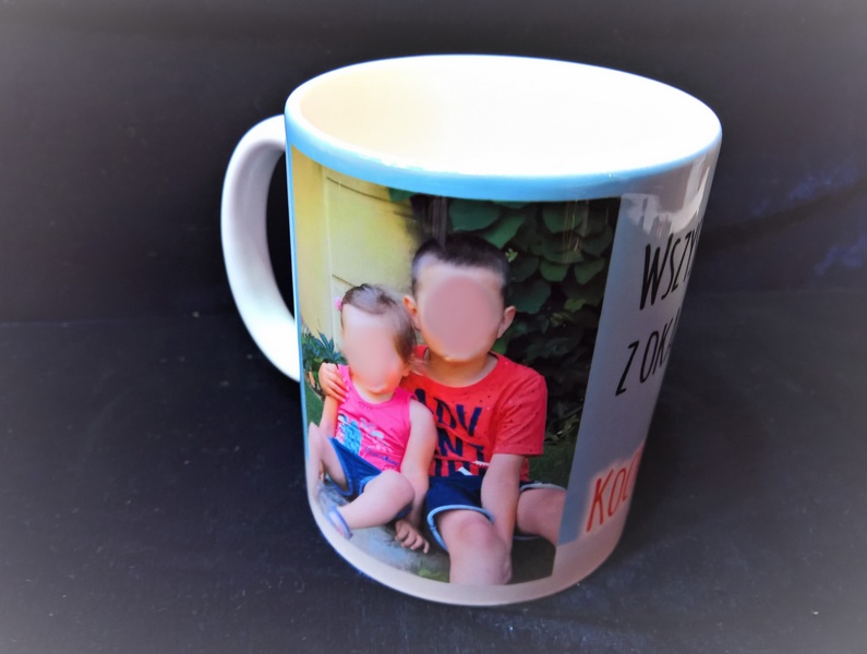 Powierzchnia kubka pokryta jest specjalną, przyjmującą nadruk powłoką, dodatkowo utwardzoną, co zapewnia odporność na mycie w zmywarce.