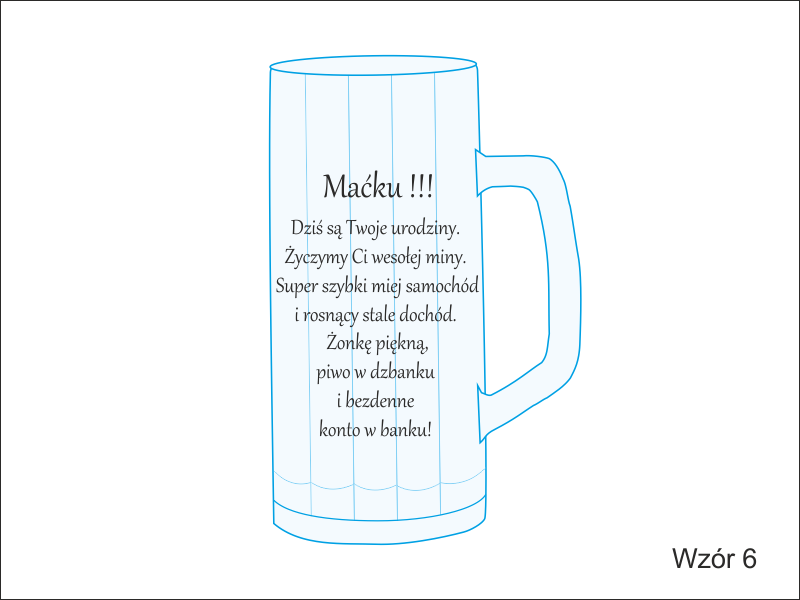Wygrawerowany kufel może w szczególności sprawdzić się jako upominek z okazji Urodzin.