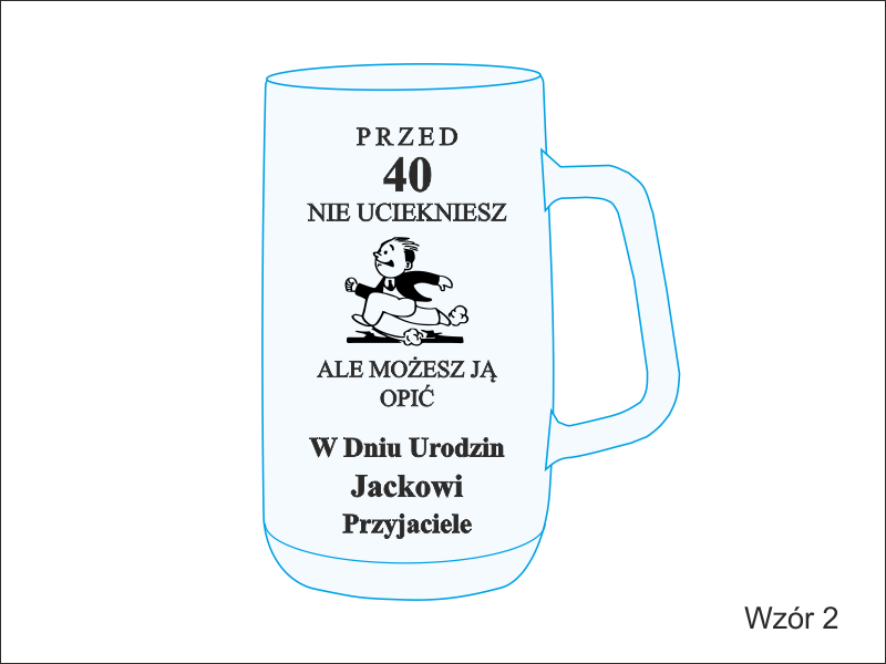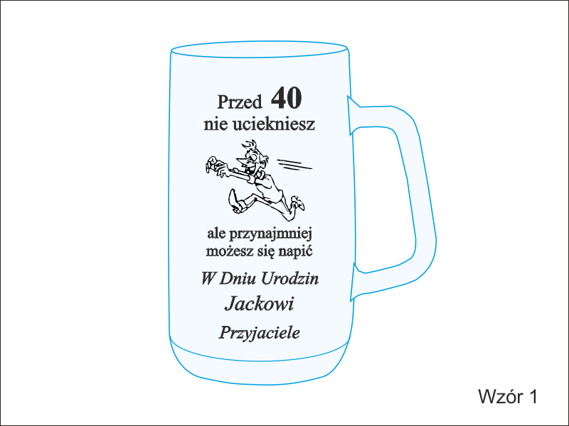 Wygrawerowany kufel może w szczególności sprawdzić się jako upominek z okazji Urodzin.