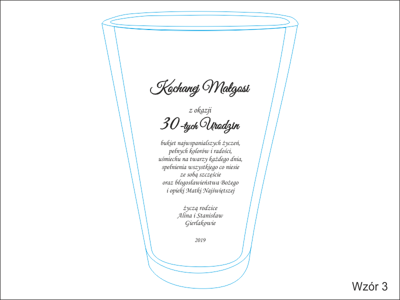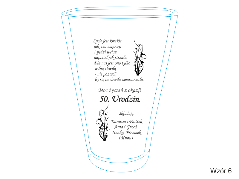Dedykację dla Jubilata można także wykonać na innych modelach wazonów.