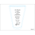 Wazon w trapezowatym rozszerzającym się ku górze kształcie, o kwadratowej podstawie z łukowatymi zaoblonymi krawędziami.