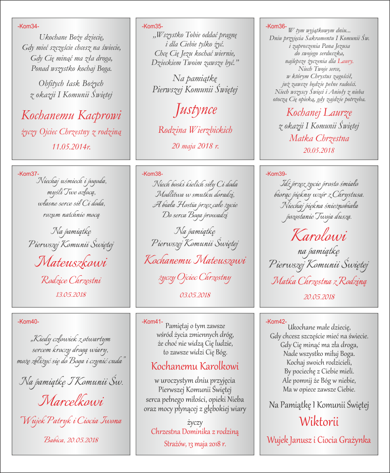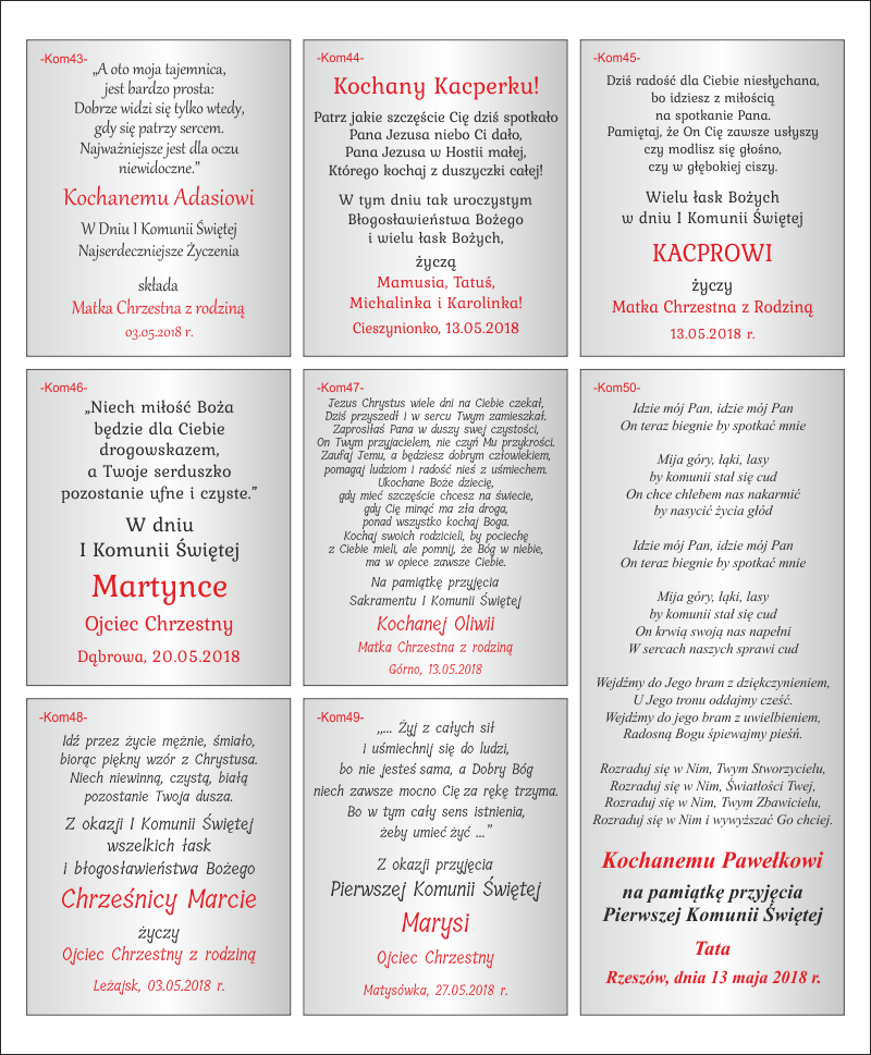 Wzory dedykacji z okazji Pierwszej Komunii Świętej zawierające w treści cytat lub wierszyk.