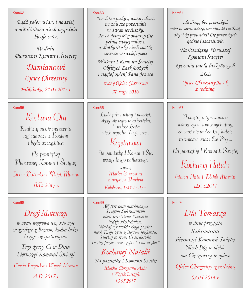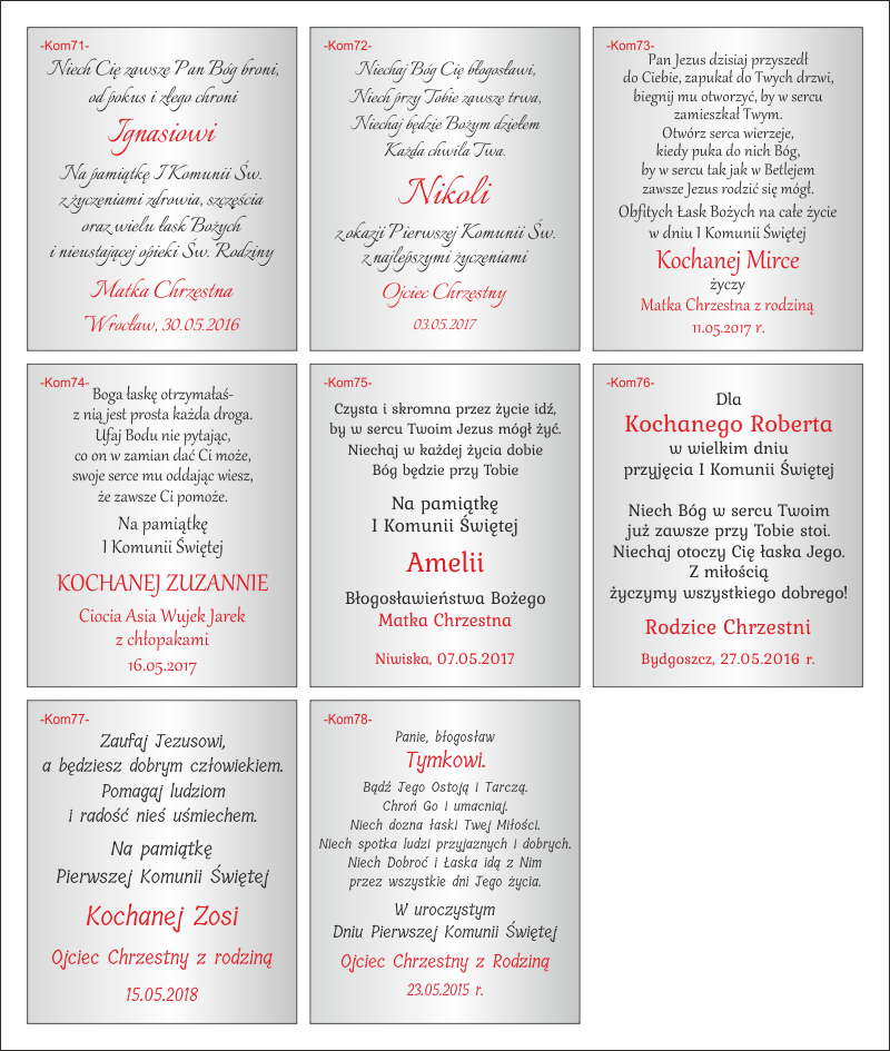 dedykacja komunia