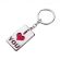 Brelok metalowy składający się z dwóch ruchomych płytek.