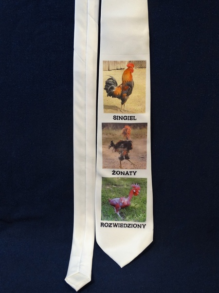 Prezentowany krawat ma nadruk, który sprawdzi się w szczególności na wieczór kawalerski.