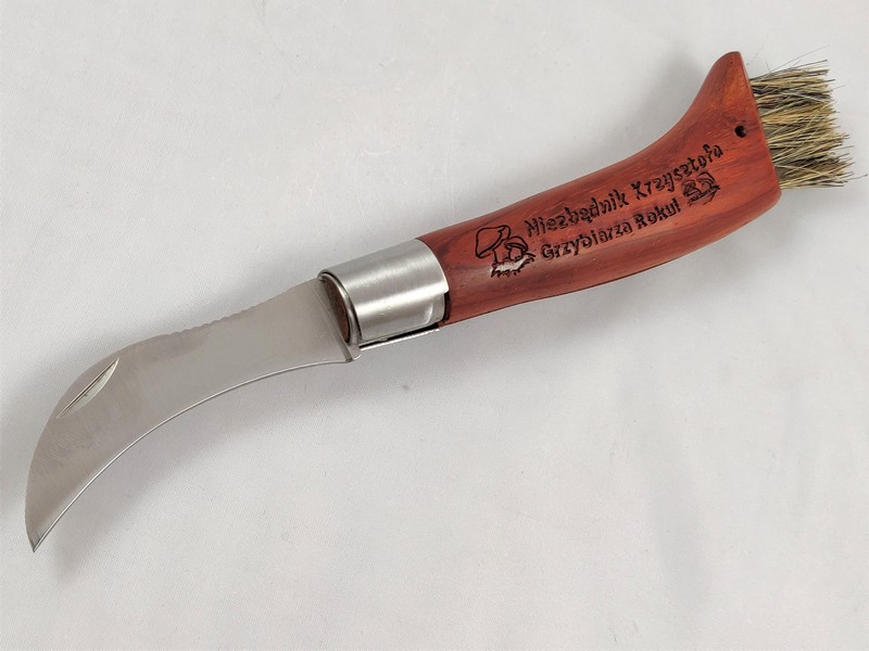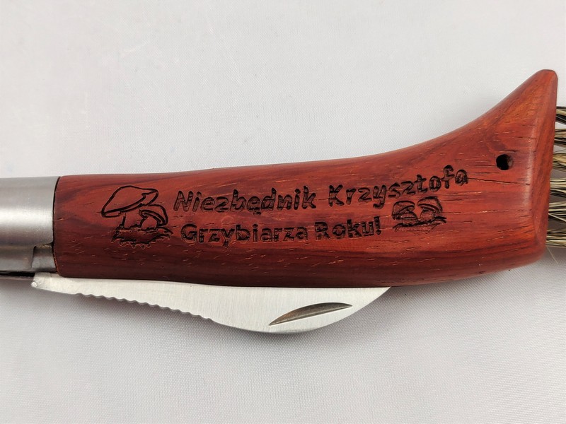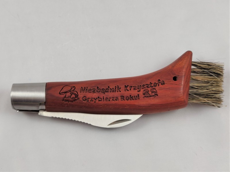Upominek dla Niego w postaci praktycznego nożyka grzybiarza z grawerem dedykacji.