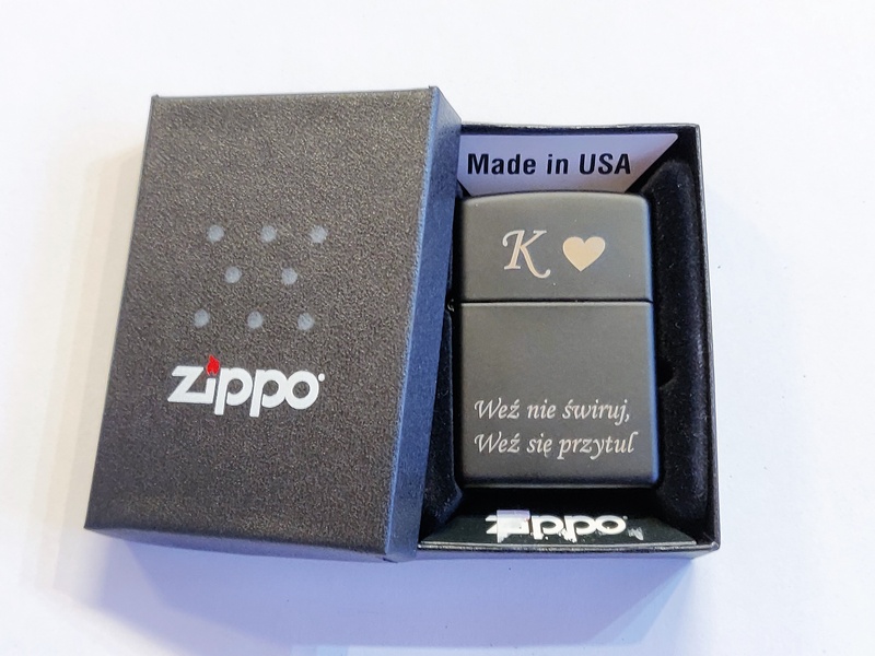 Propozycja na upominek dla Niego w postaci zapalniczki Zapalniczki Zippo Black Matte z grawerem dedykacji.