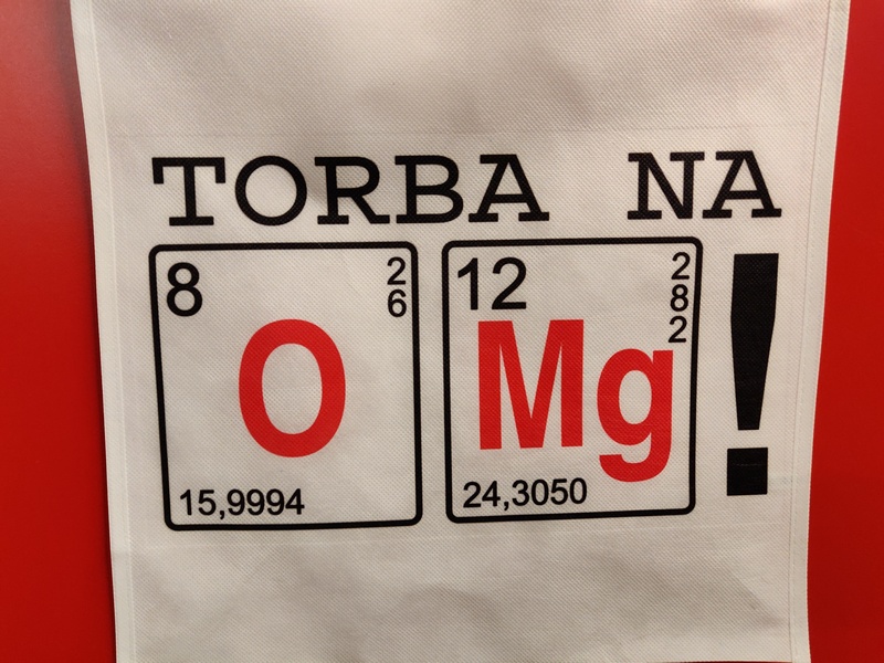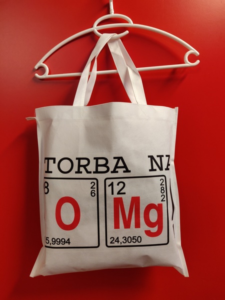 Motywem przewodnim na torbie jest dedykacja i grafika "OMg".